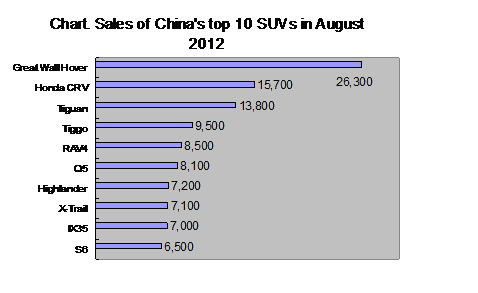 The following Chart shows the sales figures ofChina’s top 10 best-selling SUVs in August: