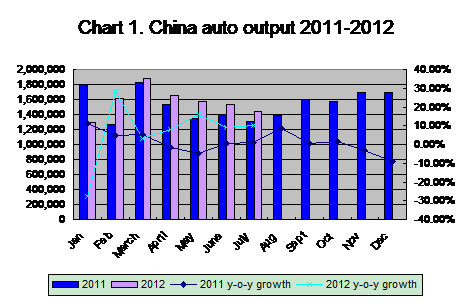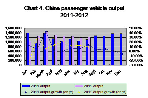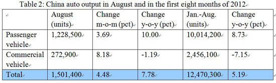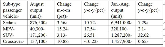 The following table shows the output of major sub-type passenger vehicles in August and in the first eight months of 2012: