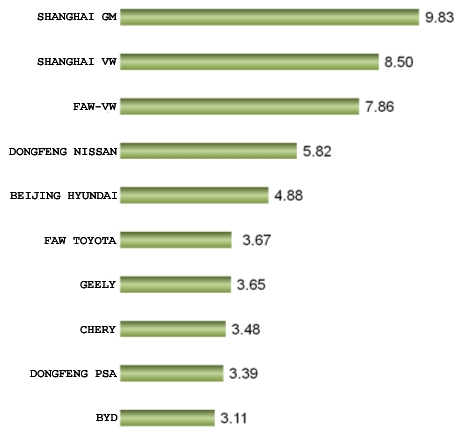 February 2012 Top 10 Performing Sedan Manufacturers