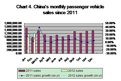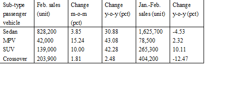 The following table shows the sales of major sub-type passenger vehicles in February and in the first two months of 2012:
