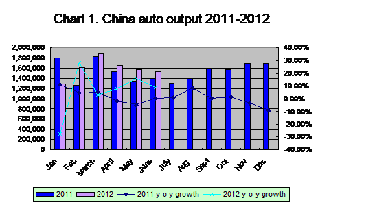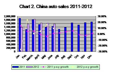 Table 2:Chinaauto output in June and in H1 2012
