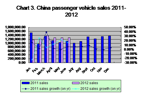 Table 1:Chinaauto sales in June and in H1 2012