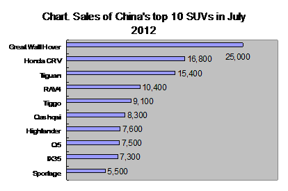 The following Chart shows the sales figures ofChina’s top 10 best-selling SUVs in July: