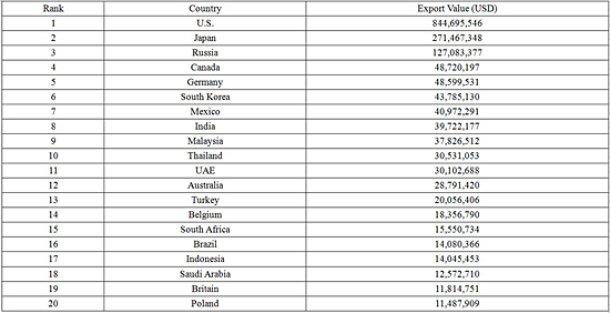 The following is a table specifying the top 20 destinations ofChina’s aluminum alloy wheel exports: