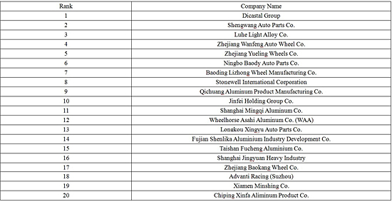 The following table shows the Top 20 domestic tire manufacturers in terms of alloy wheel exports in January-June: