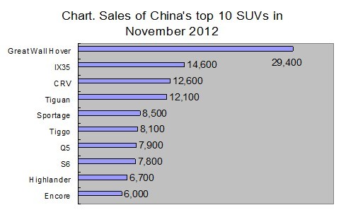 The following Chart shows the sales figures ofChina’s top 10 best-selling SUVs in November: