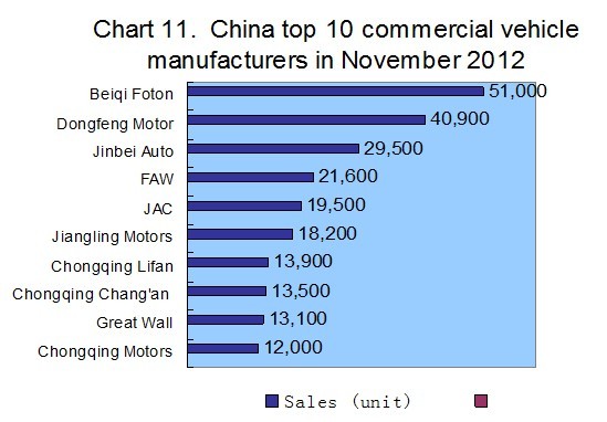 The following Chart shows sales ofChina’s top 10 commercial vehicle manufacturers in December: