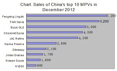 The following Chart shows sales ofChina’s top 10 best-selling MPVs in December: