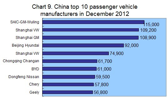 The following Chart shows sales ofChina’s top 10 passenger vehicle manufacturers in December: