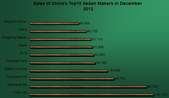 The following Chart shows sales ofChina’s top 10 sedan makers in December 2012: