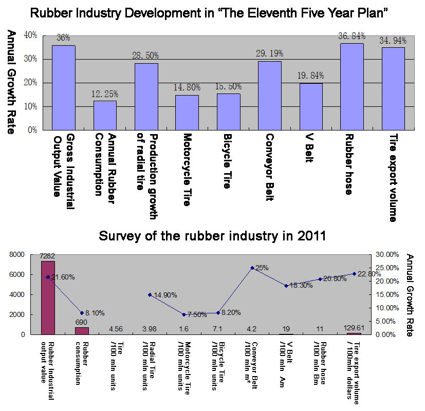 During 2006-2011,China’s rubber industrial output value reached 36% of annual growth rate and 12.25% of annual consumption growth. Amongst, radial tire’s annual growth rate reached 28.6%, and export growth reached 34.94%.