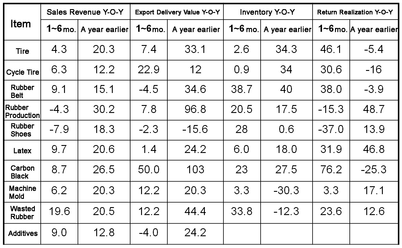 Secondly, rubber export largely jumped. In January, industrial export delivery value stood at -8.58%. Although the value steadily up in the following months and reached 14.01% of growth in April, the value fell in May and June.