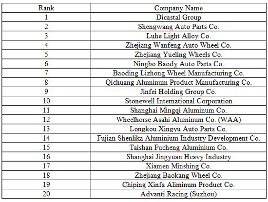 The above 20 enterprises realized combined export value of 1.288 billion US dollars in the first seven months of this year, accounting for 57.7% of China’s total aluminum alloy wheel exports, while the Top 100 wheel exporting enterprises posted combined export value of 1.930 billion US dollars during the period, representing 86.4% of China’s total.