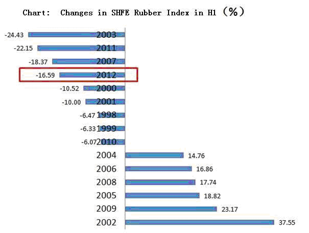 China’s domestic natural rubber market has experienced ups and downs in the first half of this year, with the backdrop of persistent euro zone debt crisis, changing monetary policy of theUS, and the slowdown ofChina’s economy as well as seasonal factors.