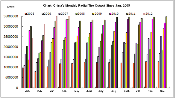 Meanwhile, operating turnover of the rubber product manufacturing sector grew 6.26% year on year in the first half of 2012. Some 34.23% of the country’s tire products were delivered to overseas markets during the period, up 1.48 percentage points year on year, with the export value up 11.29% year on year.