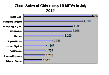 The following Chart shows sales ofChina’s top 10 best-selling MPVs in July: